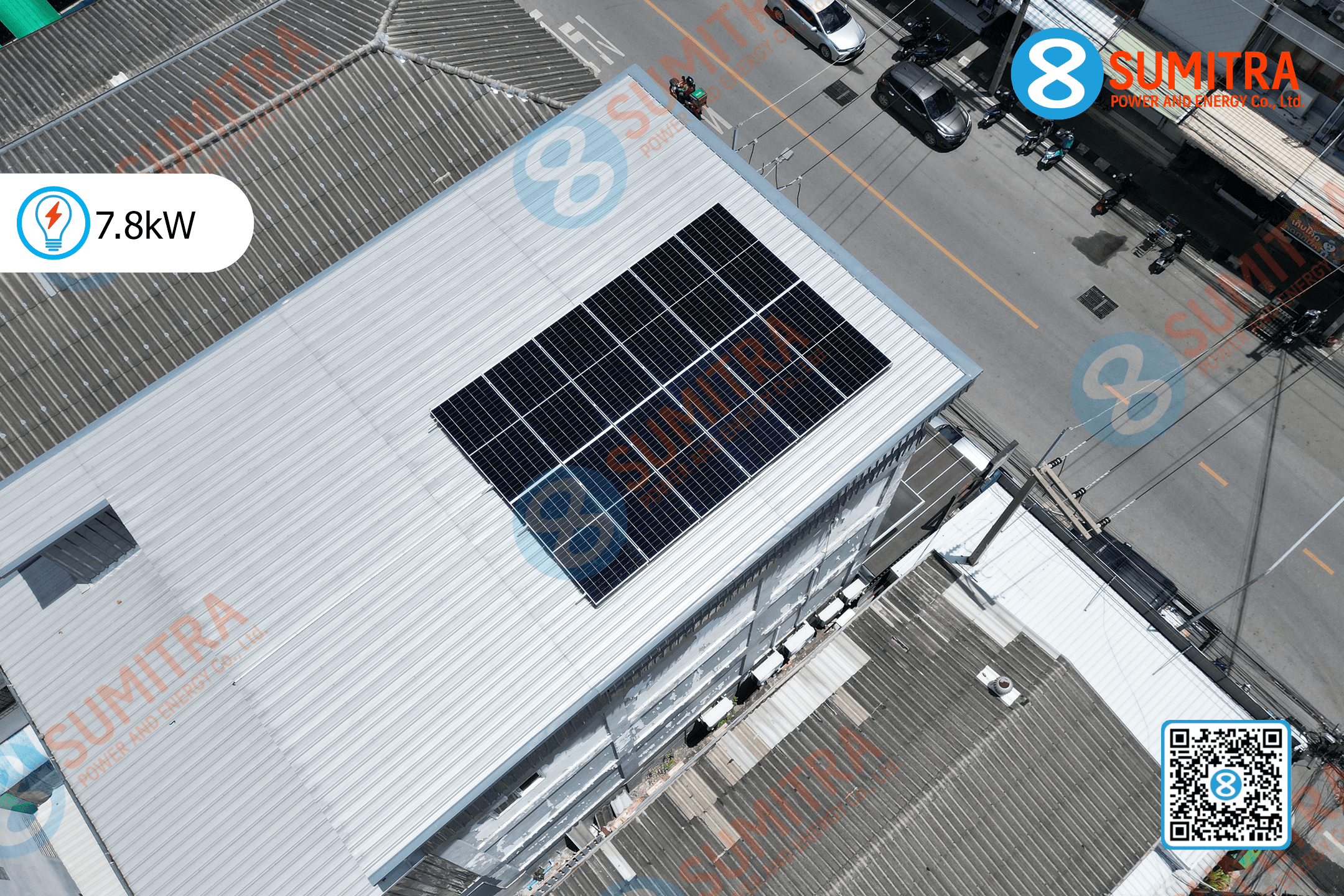Portfolio ฺBusiness บริษัท ถนอมวงศ์ 1958 จำกัด Description “ติดโซล่าเซลล์กับเรา คุ้มตั้งแต่เดือนแรก! อีกหนึ่งความภูมิใจของทีมงานเรา ลูกค้าไว้วางใจให้ทางสุมิตราติดตั้งระบบโซล่าเซลล์ที่บริษัทร้านอาหารญี่ปุ่นย่านหัวหิน โดยระบบออกแบบโดยวิศวกรมาให้เหมาะสมกับการใช้ไฟจริงของลูกค้า ใช้วัสดุคุณภาพสูง พร้อมการรับประกันและบริการหลังการขายครบถ้วน ลูกค้าสามารถลดค่าไฟได้ทันทีตั้งแต่เดือนแรก และยังมั่นใจได้ในความปลอดภัยและมาตรฐานการติดตั้งจากทางสุมิตรา ขอบคุณที่ไว้ใจเรา และเรายินดีดูแลทุกโครงการให้เต็มที่เสมอครับ 🌞 Area: 33 sqm Inverter Model: Micro Inverter HMS-2000D-4T Number of Panels: 12 solar panels System Capacity: 7.8 kW Installation Date: Sep 16,2025 More Images
