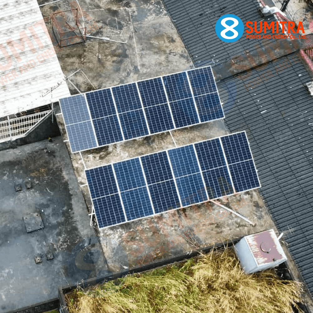 บริษัทประกันชีวิตมีสาขาทั่วประเทศไทย เป็นอาคารสำนักงานใช้ไฟตลอดทั้งวัน พื้นที่ติดตั้งเป็นพื้นดาดฟ้า ทางวิศวกรจึงออกแบบการติดตั้งและแนะนำทิศในการติดเพื่อให้โซล่าเซลล์ได้รับประสิทธิภาพในการผลิตได้ดีที่สุด