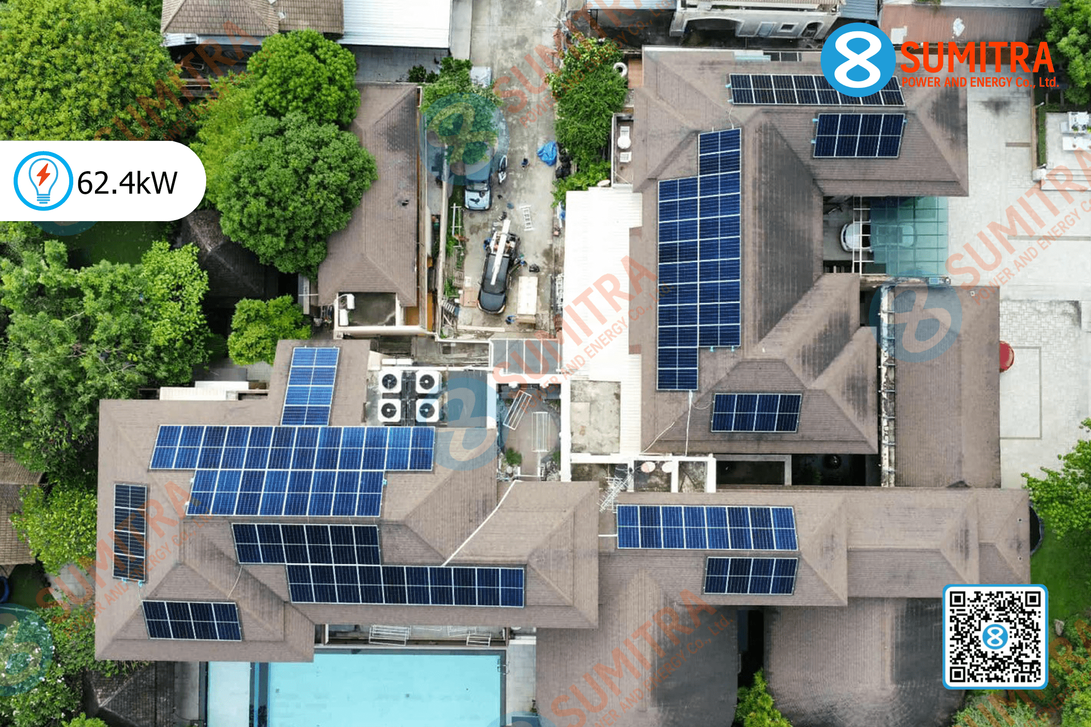 บ้านหลังใหญ่เป็นบ้านพักอาศัย และเป็นพื้นที่สำหรับการถ่ายหนังหรือละคร ที่มีใช้ไฟเยอะตลอดทั้งวัน ต้องการติดตั้งโซล่าเซลล์เพื่อประหยัดค่าไฟในช่วงกลางวัน ทางวิศวกรสำรวจหน้างานจึงวัดโหลดการใช้ไฟและแนะนำขนาดติดตั้งให้ครอบคลุมและลูกค้าจะได้ประหยัดค่าไฟให้ได้มากที่สุด