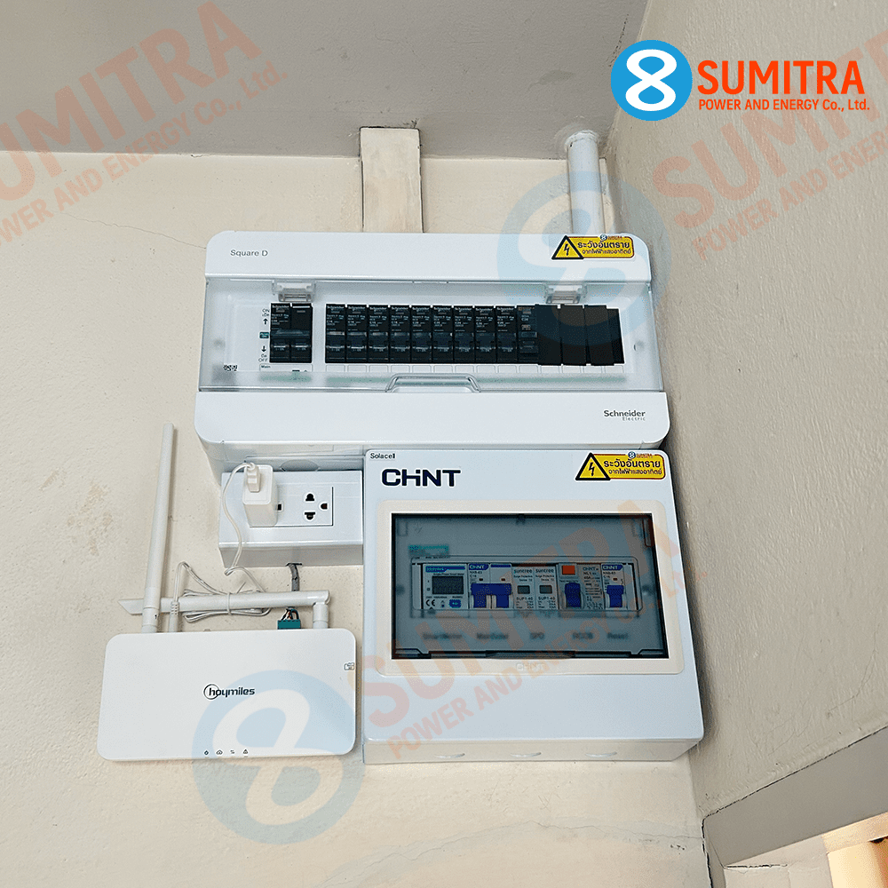 บ้านพักอาศัยมีการใช้โหลดช่วงกลางวัน วิศวกรสำรวจหน้างานจึงแนะนำขนาดติดตั้งพอดีกับการใช้ไฟของลูกค้า และได้แนะนำให้ลูกค้าเปลี่ยนตู้ไฟของที่บ้าน เนื่องจากตู้ไฟเดิมของลูกค้าค่อนข้างเก่าและลูกค้าต้องการขยายตู้ไฟให้ใหญ่ขึ้น ทางวิศวกรจึงเข้าติดตั้งโซล่าเซลล์พร้อมช่วยแก้ปัญหาในส่วนนี้
